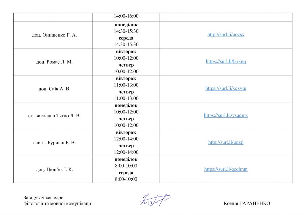 Графік консультацій викладачів кафедри на 1 семестр 2024-2025 н.р.