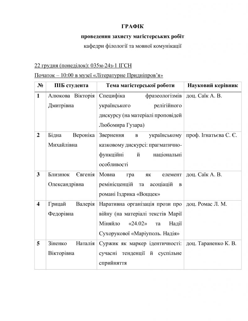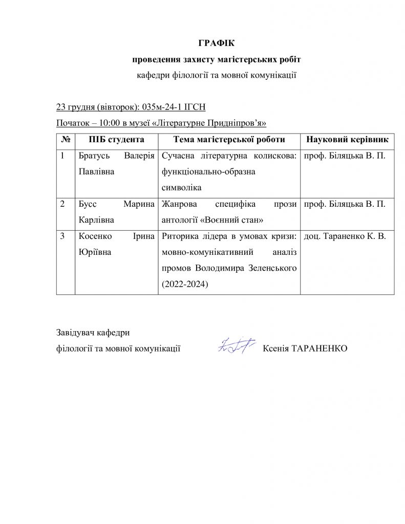 Графіки проведення захисту магістерських робіт 2024-2025 н.р.